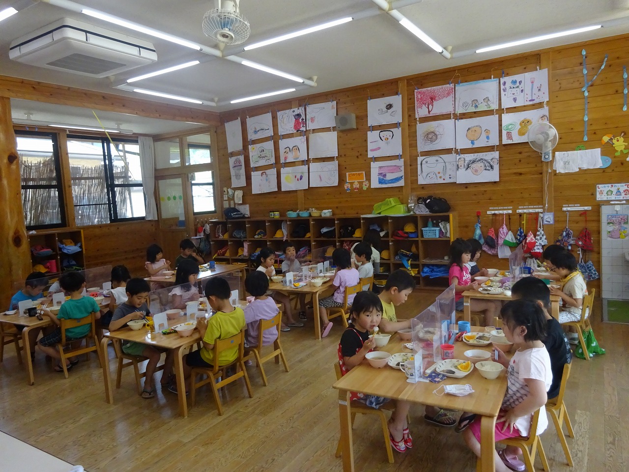 今日から22人全員揃うということで、嬉しそうに登園してくる子どもたち。感染予防をしながらの新しい生活スタイルも分散登園中に身につけ、自分たちで気づいて声をかけ合う姿も見られます。