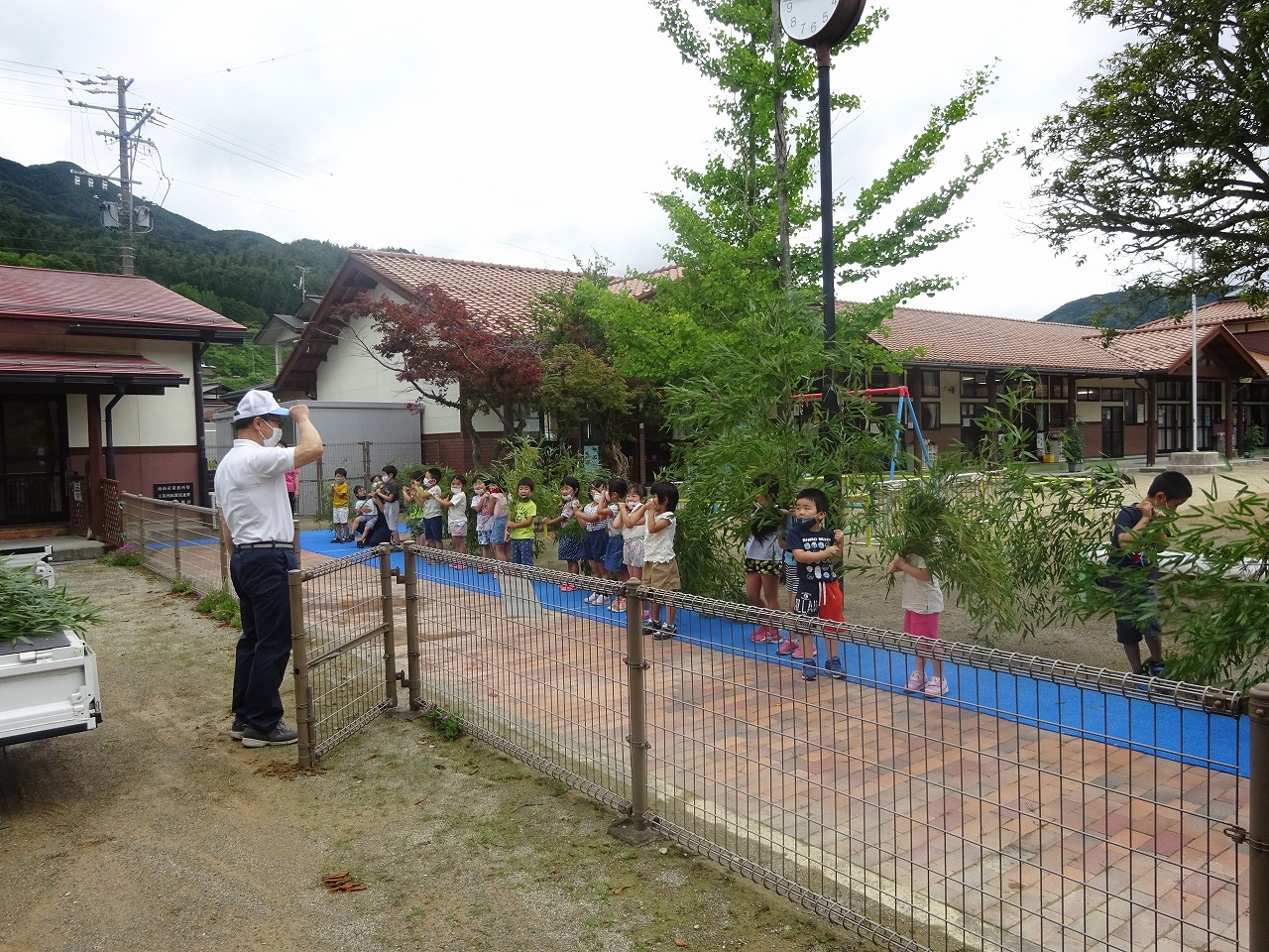 野上地区の区長さんが、七夕の笹を切ってわざわざ園まで届けてくださいました。