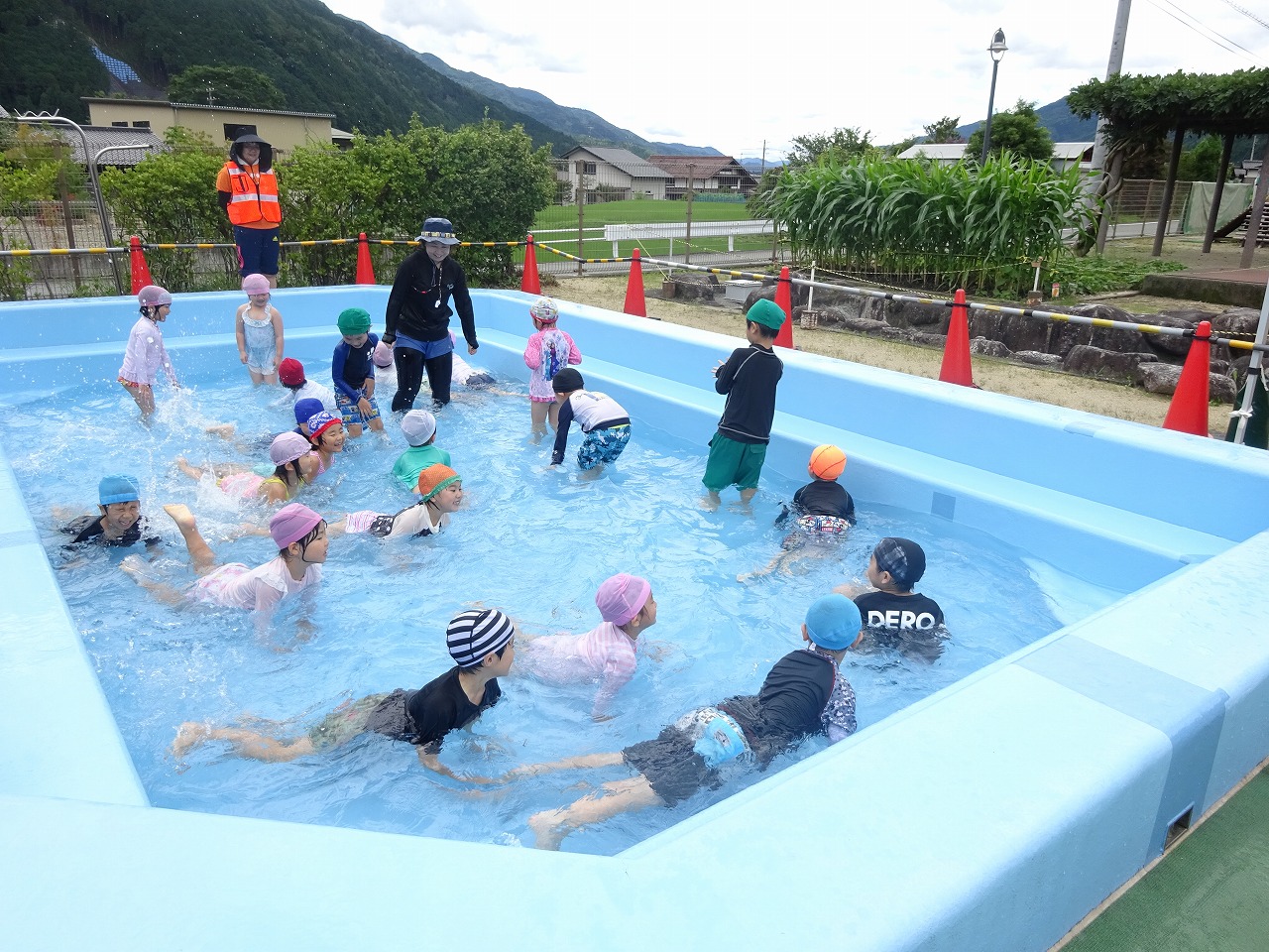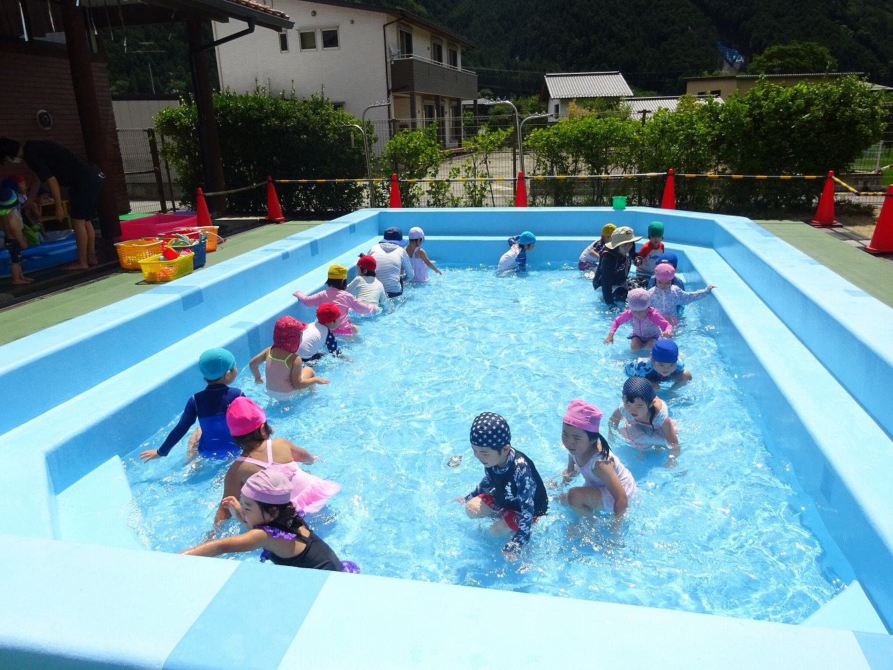 やっと晴れてくれました。前回のプールは少し肌寒い日でしたが、今日は日差しがあり、とても気持ちの良いプールあそびとなりました。