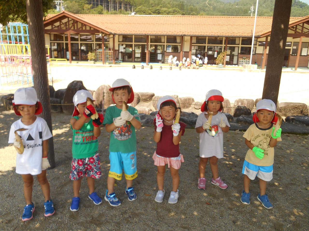 ずっと収穫を楽しみにしていた年中さん。今日は暑い中でしたが、自分の手でトウモロコシを採り皮をむいて、吊るして乾燥させる準備をしました。クッキングまではまだ少しかかりますが、とっても楽しみにしている子どもたちです。
