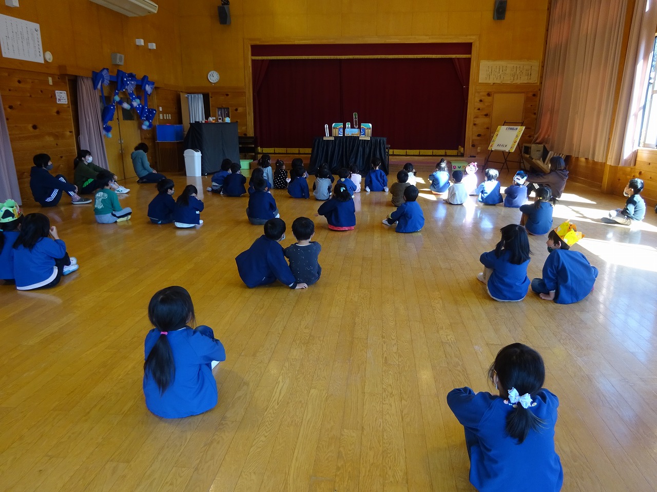 未満児さん・年少さんの部、年中さん・年長さんの部に分かれて行いました。2月の誕生日のお友だちは、未満児さん1名、年少さん1名、年中さん2名、年長さん2名です。