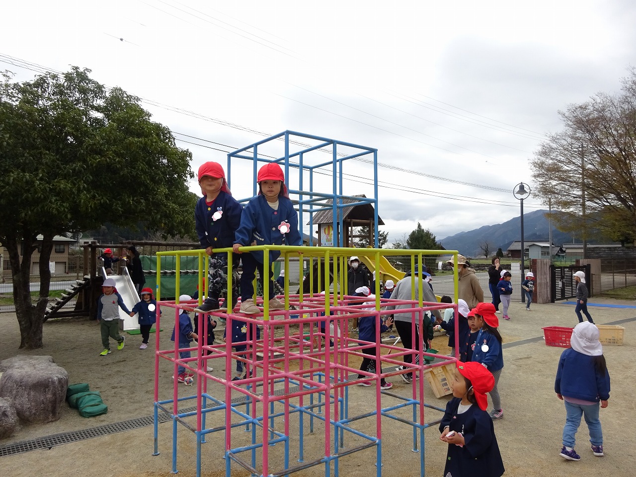 園庭ではジャングルジムやすべり台、いろんな遊具に興味を示し、まだまだ遊んでいたい様子の子どもたちでした。おやつも笑顔で食べました。明日も元気に来てね。