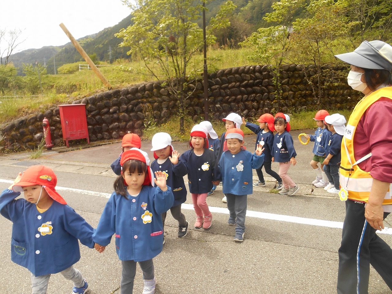 天気の良い日が続き、散歩に出かけています。このような時期ですので他の学年との交流はなるべく避け、散歩も学年ごとに行くようにしています。