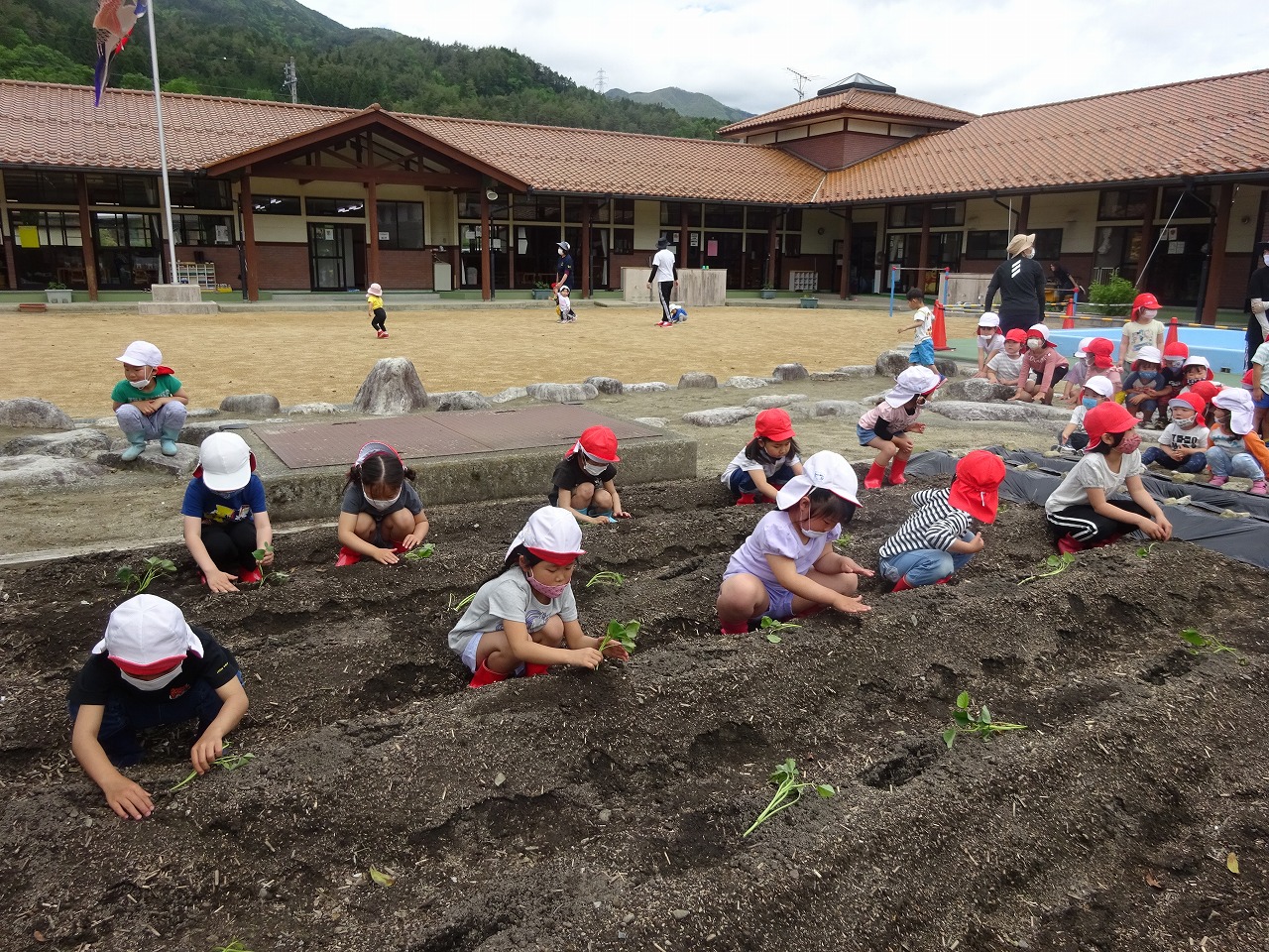 苗は数日間水につけ、吸水しておきました。説明をしっかり聞いた通り、苗を寝かせて植えてから土を優しくかけてくれました。これから暑くなると水やりに大忙しですが、みんなでお世話をして秋には収穫し、美味しい焼き芋を食べられることを楽しみに待ちたいと思います。