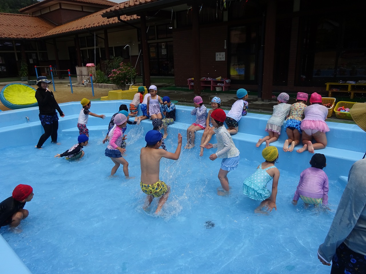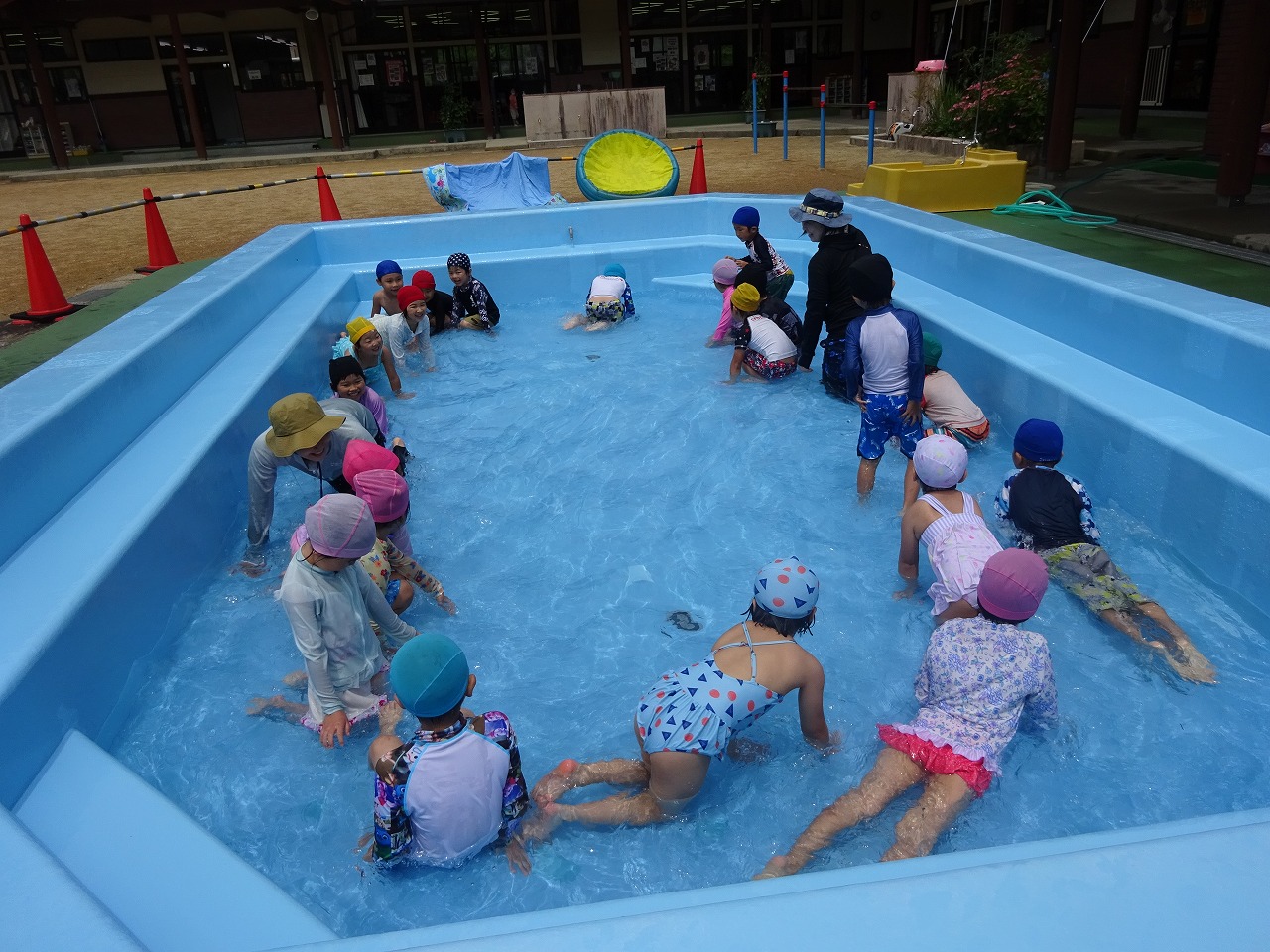 顔つけをしたり、ワニ泳ぎをしたり、得意なことを「見て見て〜」とやって見せてくれました。年長さんになるとこの夏で泳げるようになる子もたくさんいるでしょうね。とっても楽しみです。