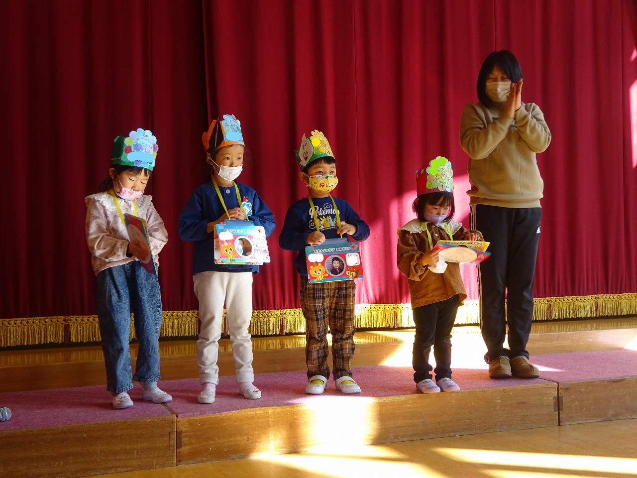 年少さん2名、年中さん4名、年長さん2名のお祝いをしました。今月は全園児で集まることを避けグループに分けて行いました。