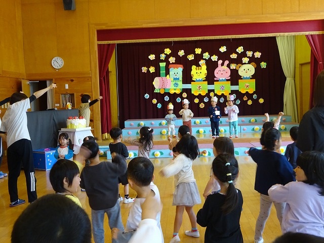 今年度初めての誕生会♩ 遊戯室で全員参加でするのは久しぶりでした。さくら組のお兄さん、お姉さんがインタビューするのを真似てちゅうりっぷ組さんも頑張ってアイスクリームやさん、アンパンマンといろんな夢を上手に発表してくれました。自分もいつかみんなの前でお祝いしてもらえると楽しみにする姿がみられましたよ。