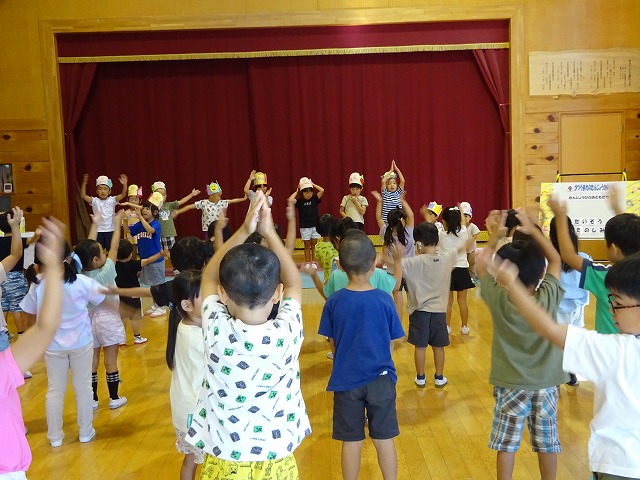 全園児で9月生まれのお友だちのお祝いをしました。9月生まれの子はなんと11人。嬉しそうにステージに上がりインタビューに答えてくれました。