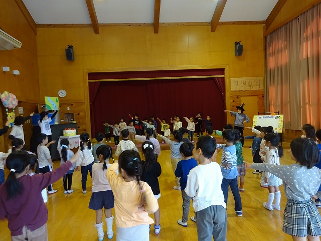 10月生まれ4名のお友だちの誕生会を行いました。名前や将来の夢などのインタビューでは一つ大きくなったことに自信を持ち大きな声で答えてくれました。