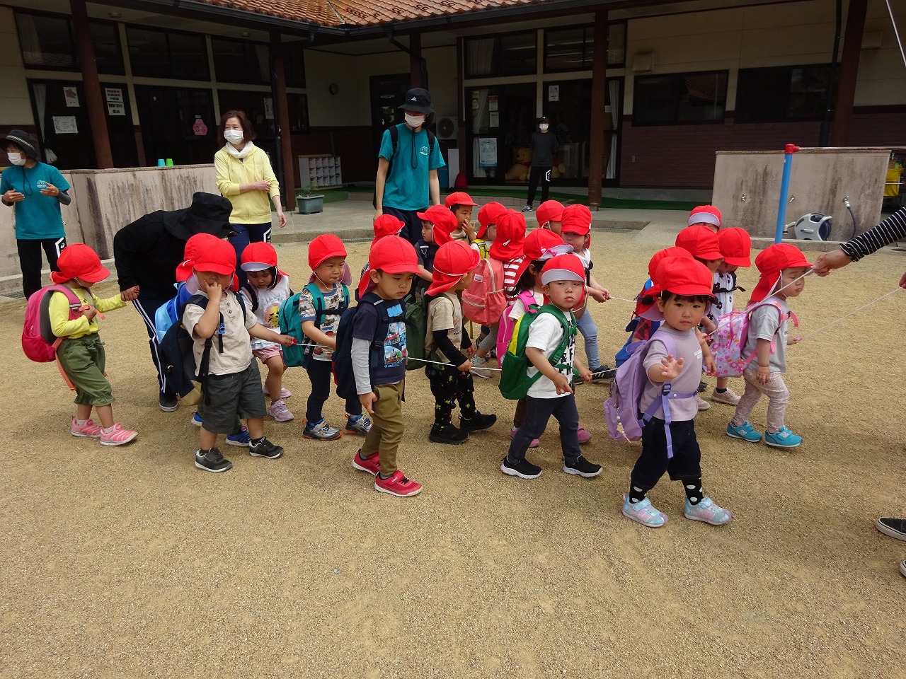 天気の良い日が続き、散歩に出かけています。このような時期ですので他の学年との交流はなるべく避け、散歩も学年ごとに行くようにしています。 |