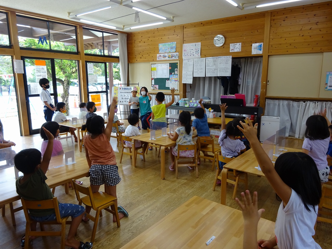8月生まれのお友だちは年長さん一人でした。クラスのみんなでハッピーバースディのうたを歌ったり |