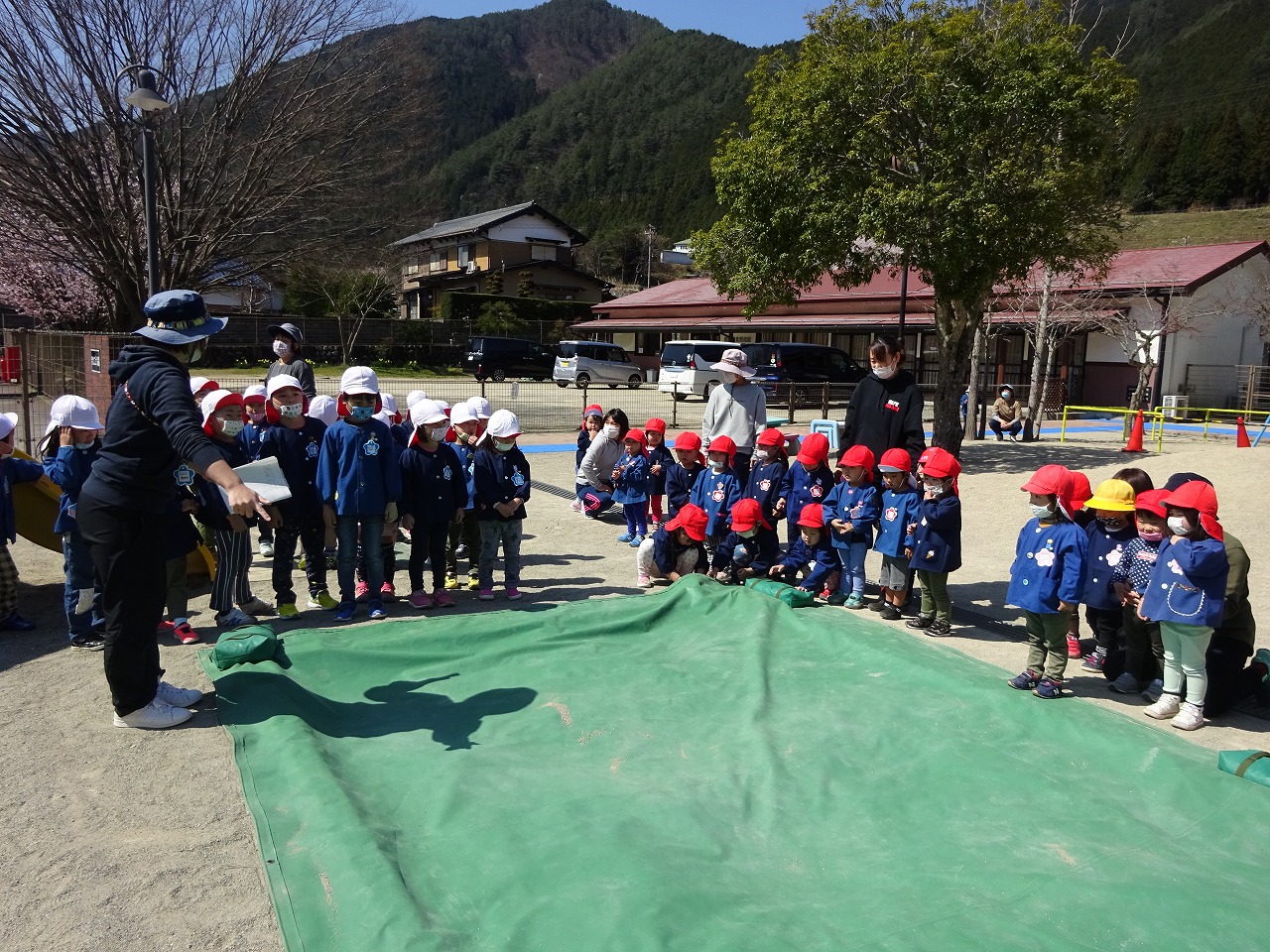 こども園での生活がスタートしました。年少さんははじめてお家の方から離れ、今朝は少し泣いていた子もいましたが、園庭で遊び始めるとみんな元気いっぱい、笑顔いっぱいになりました。 |