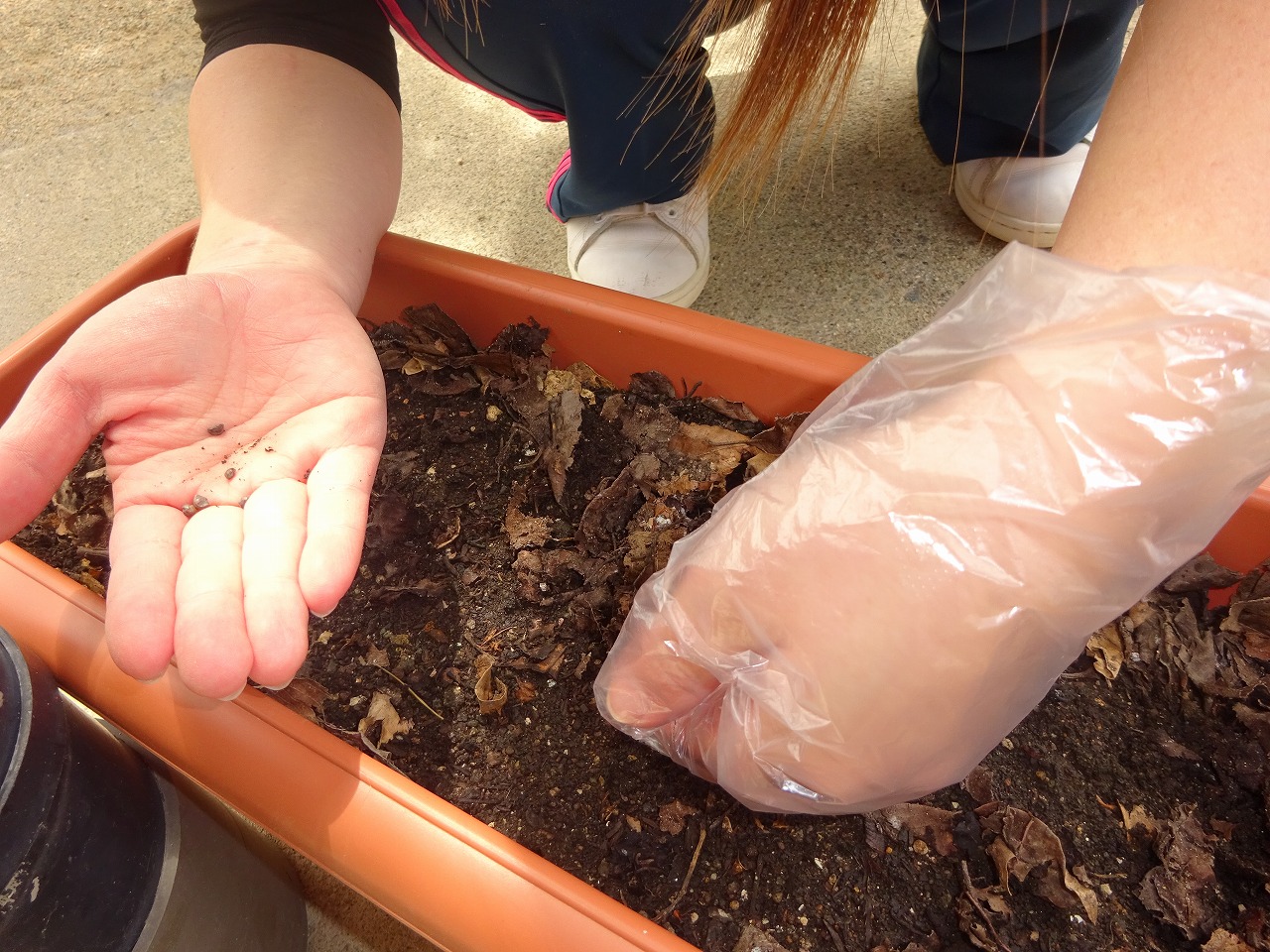 こども園がお休みの間に、未満児さんの先生たちでミニトマトの苗植えと、ひまわりの種植えをしました。 |