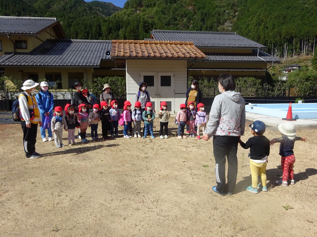 楽しみにしていた遠足。年長さんはリュックを背負い頑張って飛騨川公園まで歩いて行きました。飛騨川公園に着くと管理人の方のご厚意でさつまいもの収穫を体験させていただきました。土を掘るとどんどん出てくるお芋に大喜びの子どもたちでした。 |
