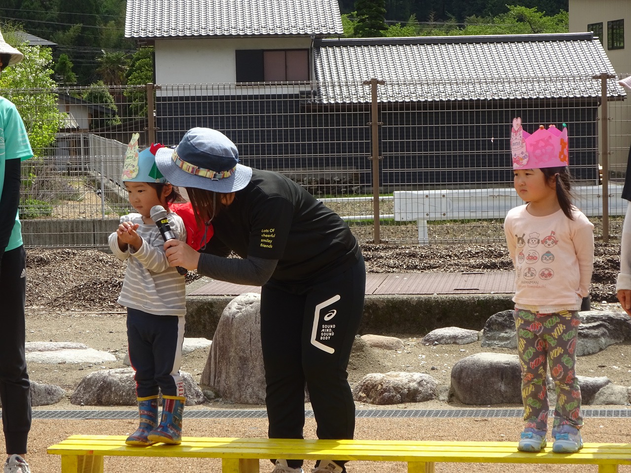 年少さん4名、年中さん1名のお祝いをしました。良い天気に恵まれたので、園庭に全園児が集まって行うことができました。 |