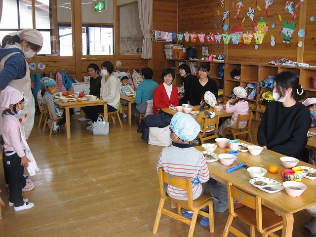 きたこども園で、年少親子給食会がありました。