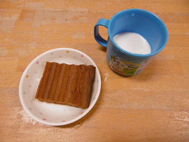 卵 4 ②①に溶き卵、ケーキミックス、スキムミルク、ココアを加える。