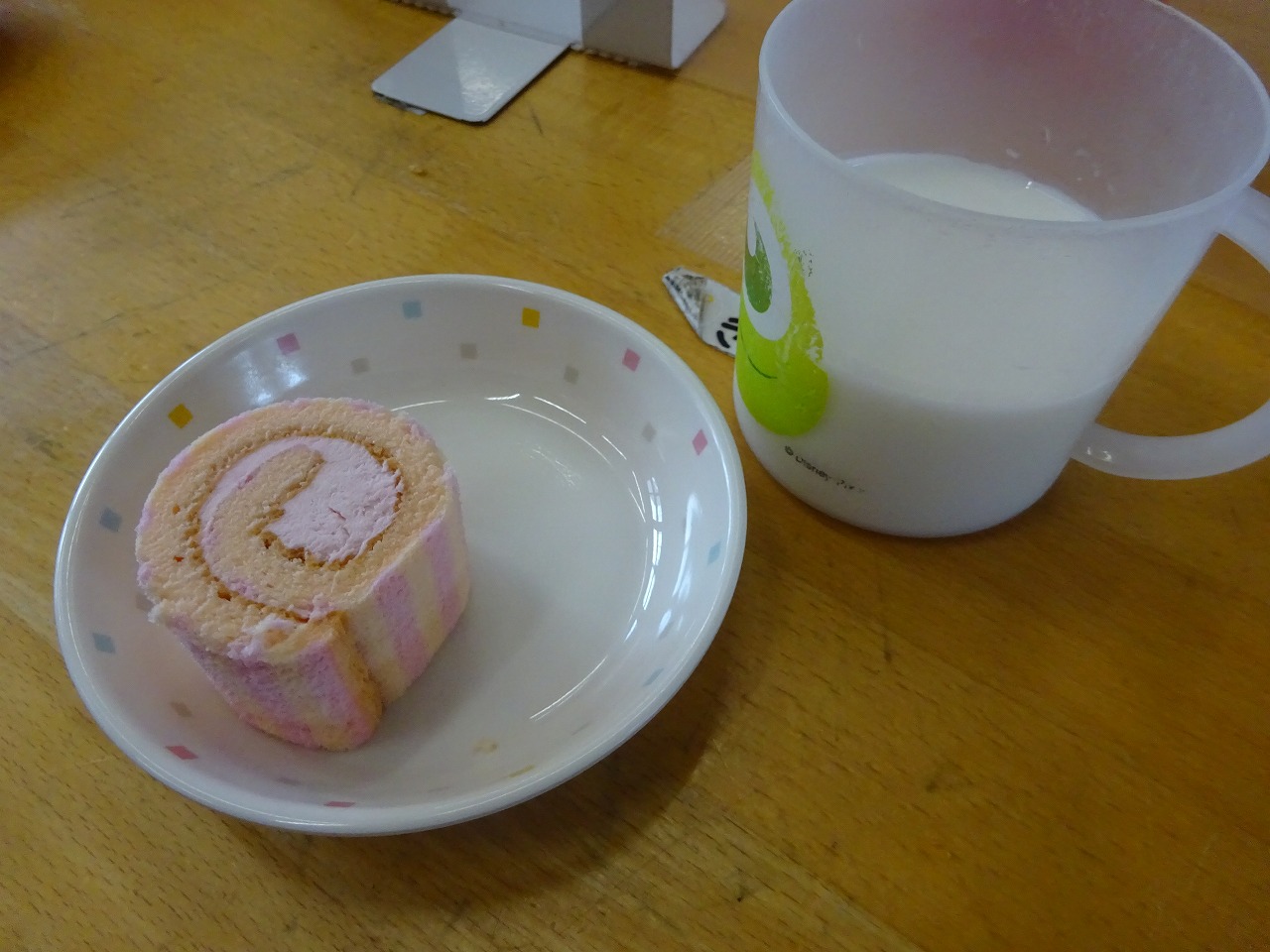 おやつは、ロールケーキ(いちご)