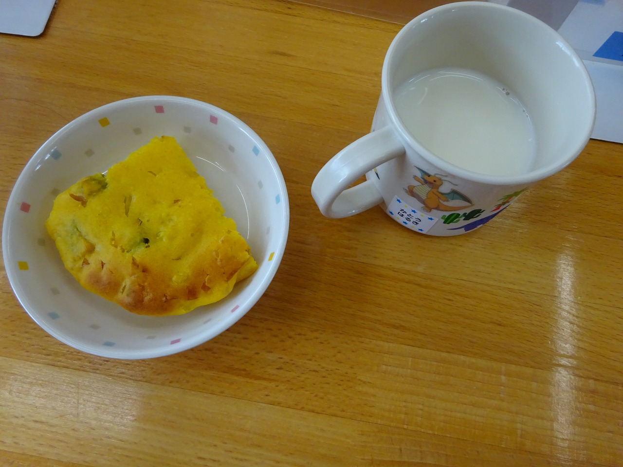 『やさいケーキ』には、 かぼちゃ、にんじん、コーンとハム、チーズを入れて、作りました。
