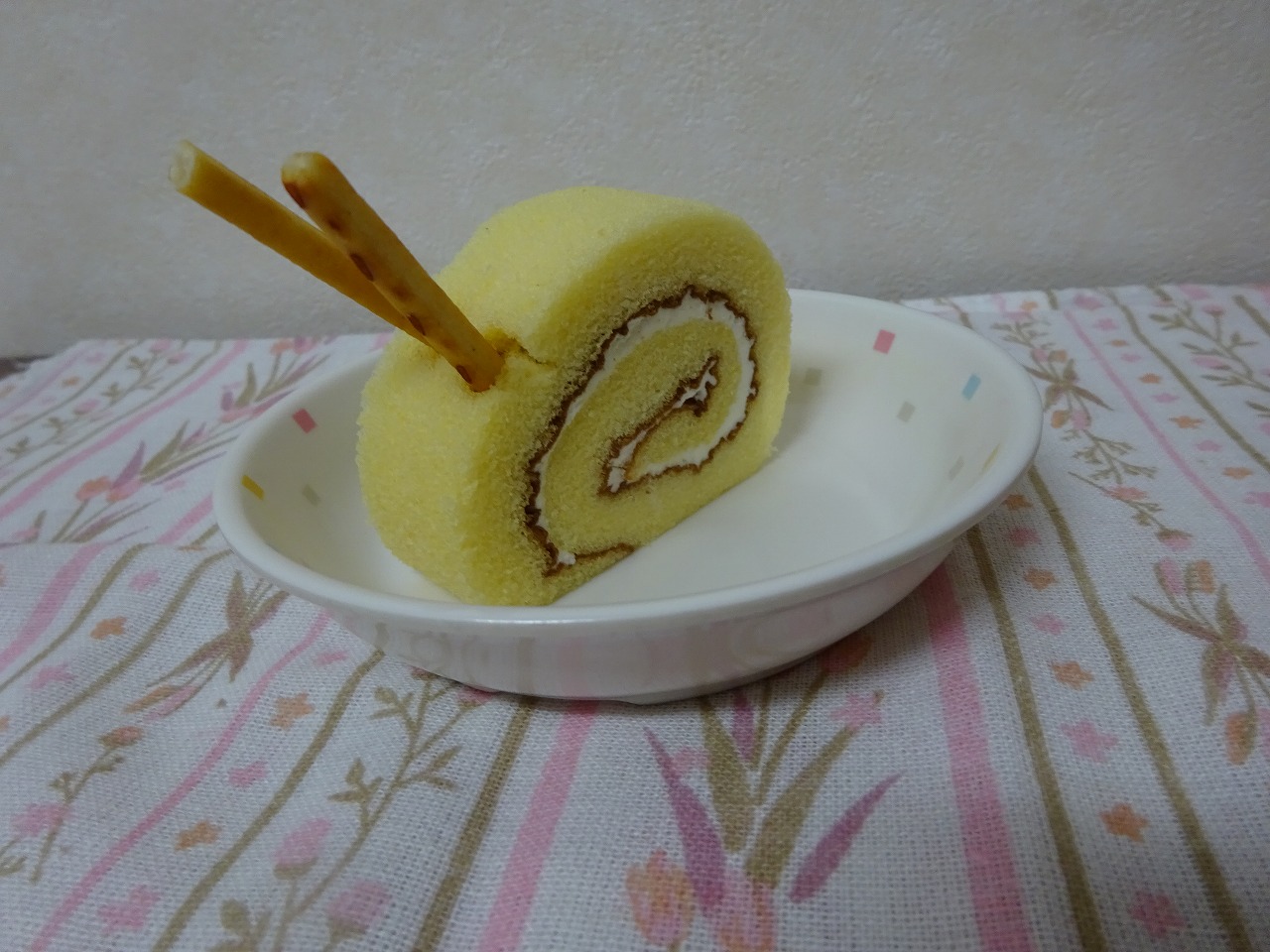 ロールケーキにプリッツをさしたものです。