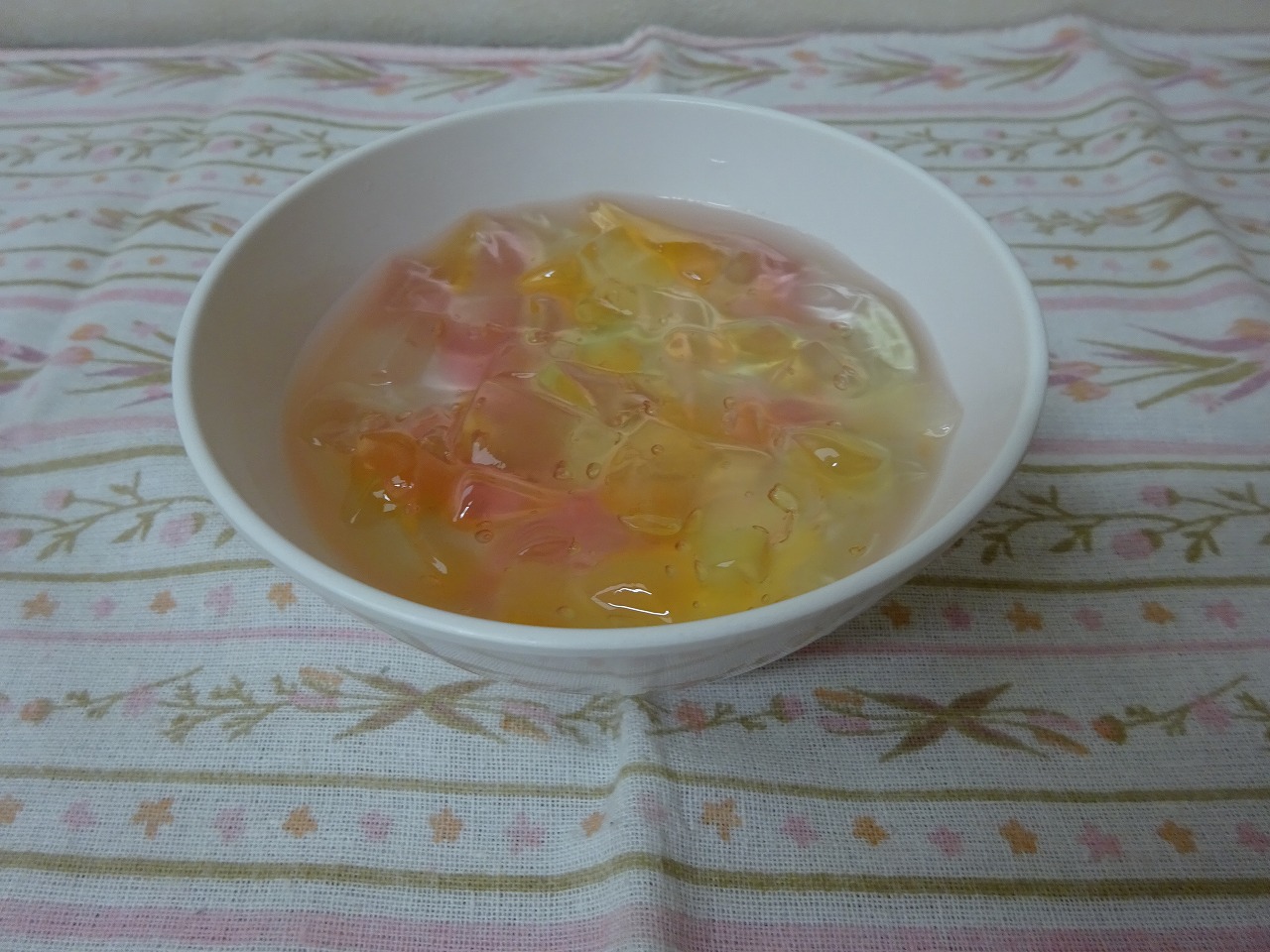 5つの味の違うゼリーを混ぜた、手作りゼリーです。