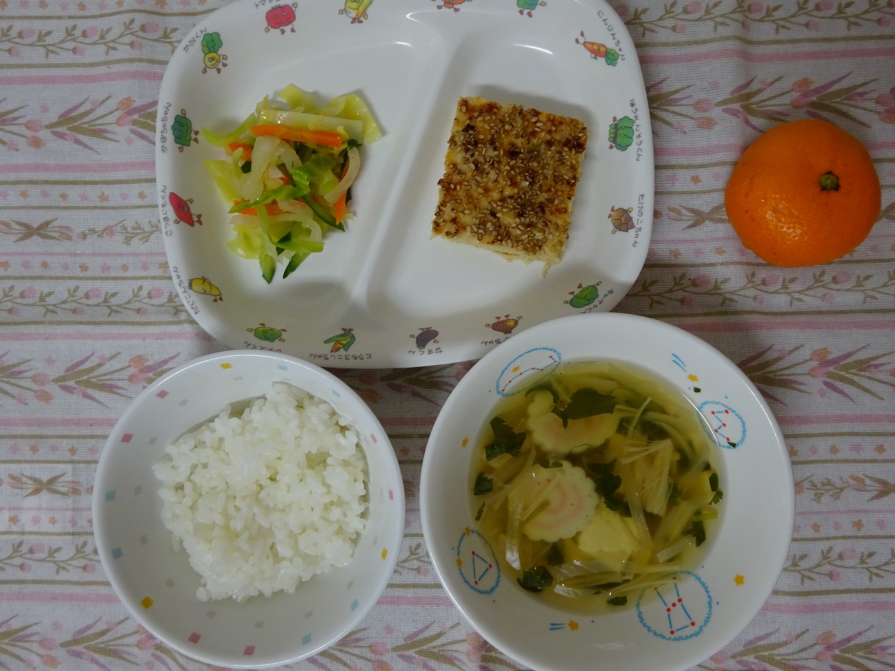 1月19日(金)給食 ・ごはん ・松風焼き ・和風サラダ ・すまし汁 ・みかん