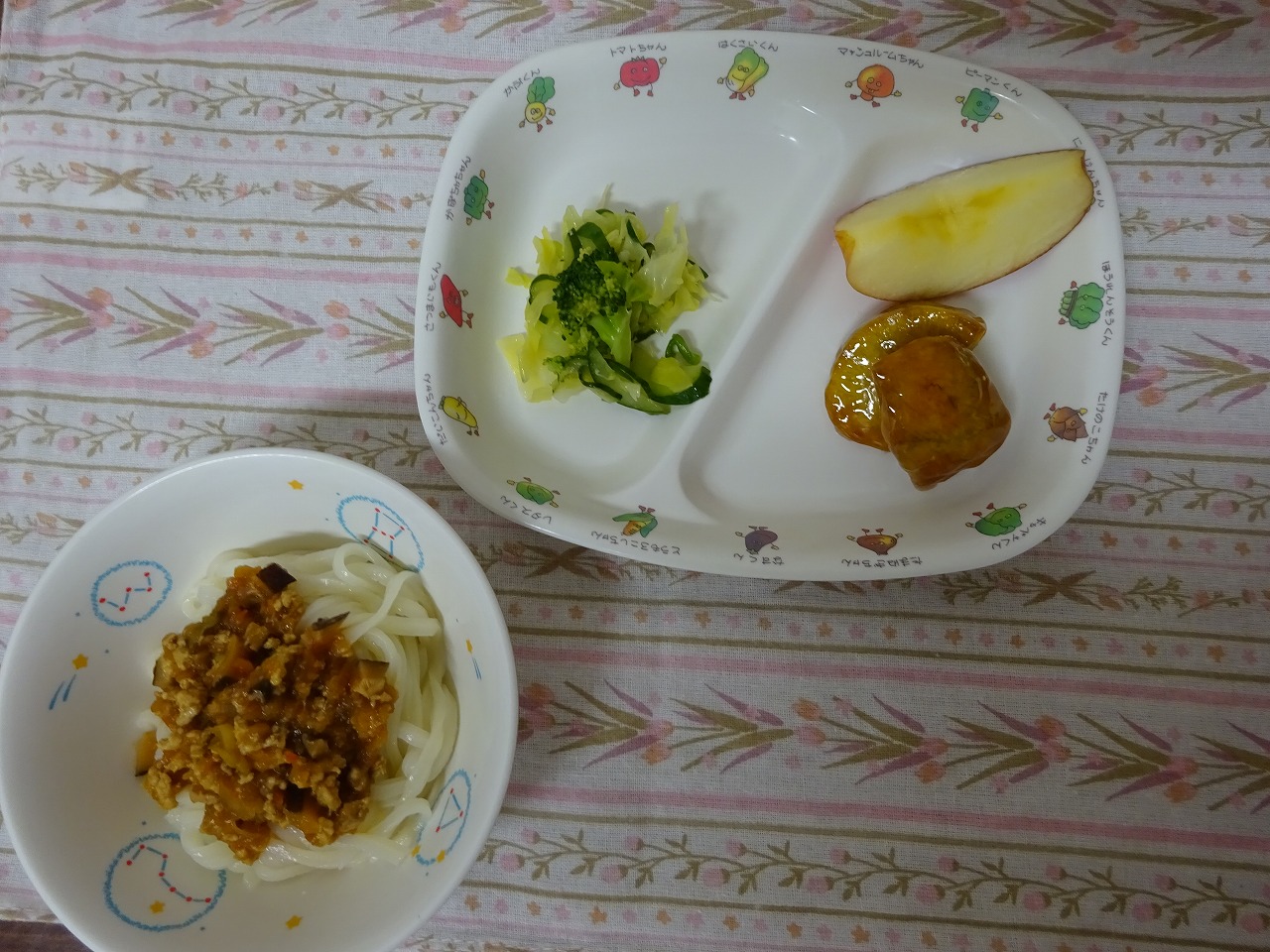 1月31日(水)給食 ・ジャージャーうどん ・グリーンサラダ ・中華ポテト ・りんご