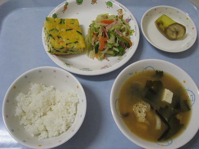 3月2日(水) 給食 ・ごはん ・千草焼き ・切干大根サラダ ・みそ汁 ・バナナ