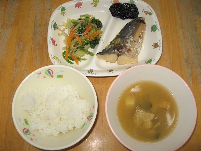 4月7日(木) 給食 ・ごはん ・さわらの西京焼き ・ほうれん草のごまあえ ・みそ汁 ・プルーン 年長さん、年中さん、新しいクラスのお友達と楽しそうに食べていました。 「“ほうれん草のごまあえ”もっとほしい人いますか?」と保育士が聞くと、「は〜い」とほとんどの子の手が上がりました。お友達と一緒だとたくさん食べれるのでしょうか。