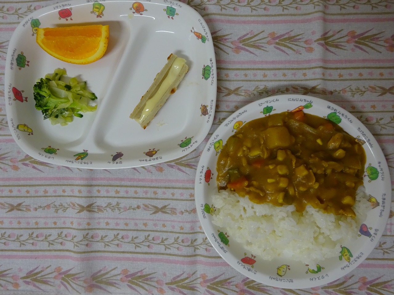 11月13日(月)給食 ・カレーライス ・ちくわのマヨ焼き ・グリーンサラダ ・オレンジ