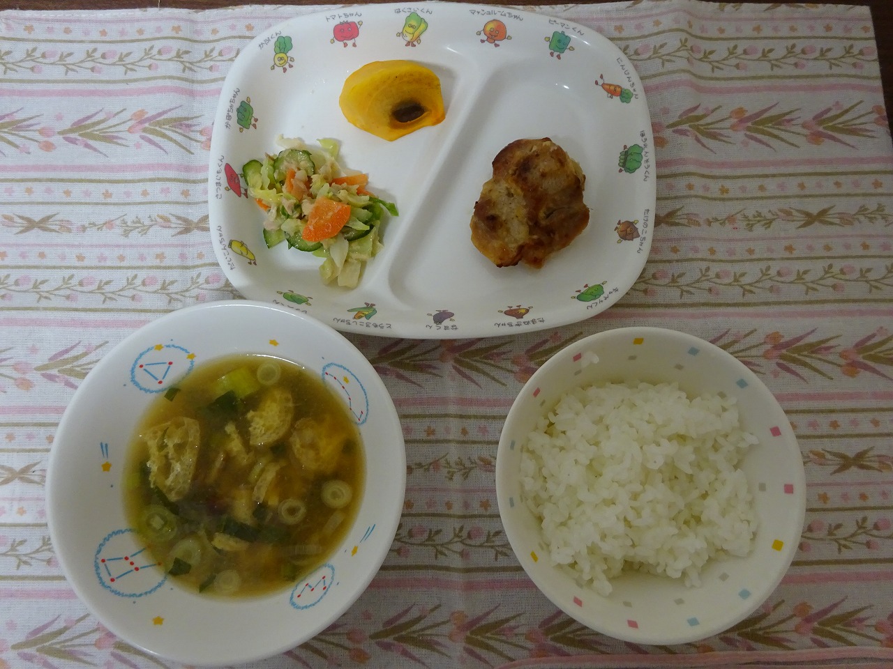11月24日(金)給食 ・ごはん ・鶏肉の香味焼き ・ツナサラダ ・みそ汁 ・柿