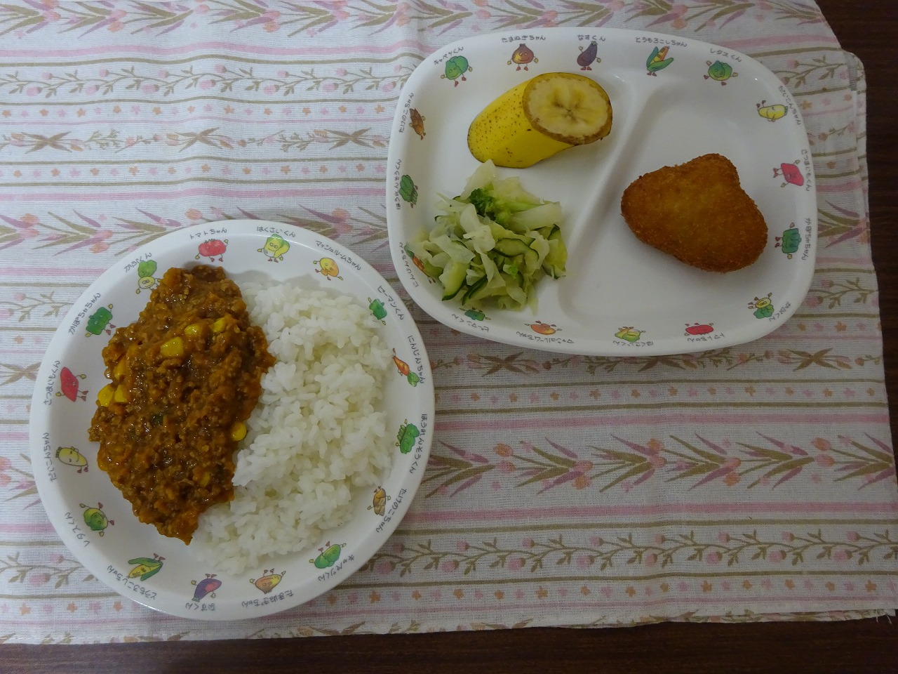 9月27日(水)給食 ・ドライカレー ・焼き栗コロッケ ・グリーンサラダ ・バナナ