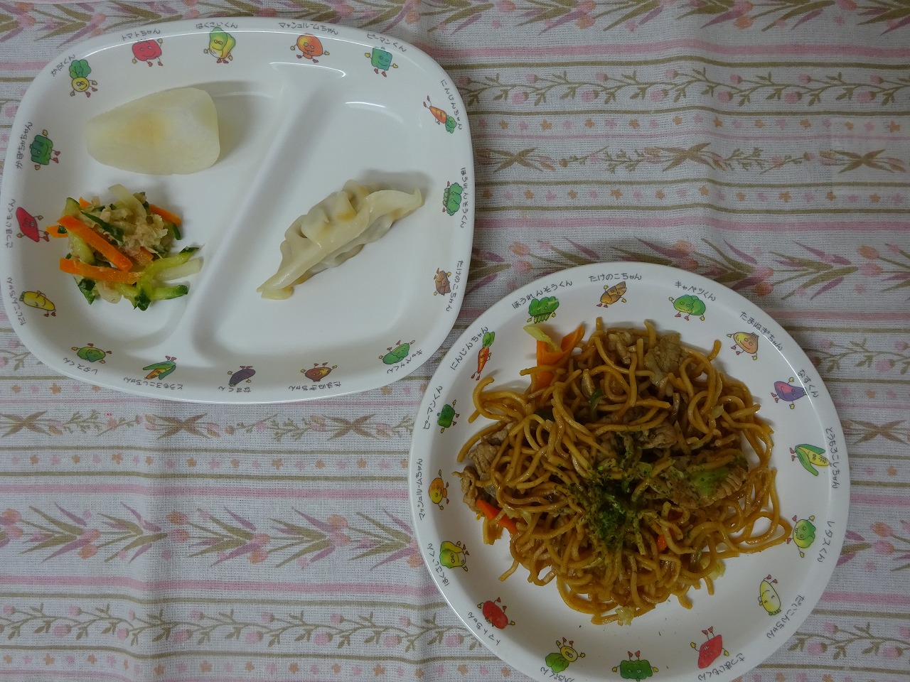 9月15日(金)給食 ・焼きそば ・焼きギョウザ ・大根サラダ ・なし