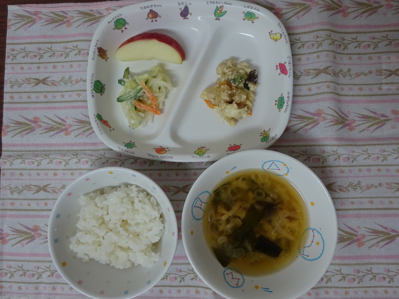 9月22日(金)給食 ・ごはん ・炒り豆腐 ・シルバーサラダ ・みそ汁 ・りんご