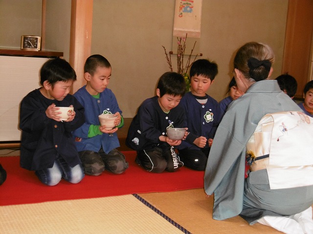 卒園と小学校入学おめでとうの気持ちを込めて、今年も横山社中の皆さんがお茶会を開いてくださいました。