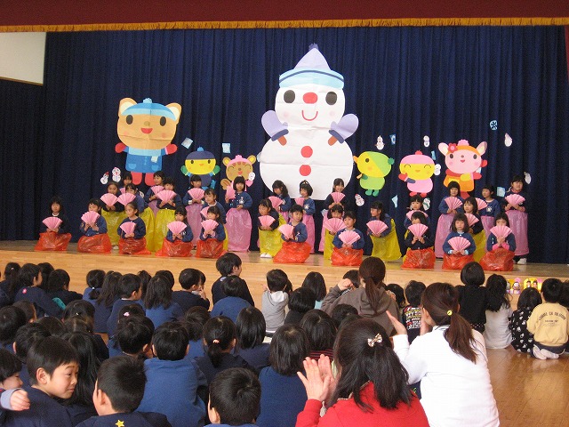 次に年長の女の子の素敵な踊りを観ました。衣装を身につけ扇子を持っておしとやかに可憐に踊りました。