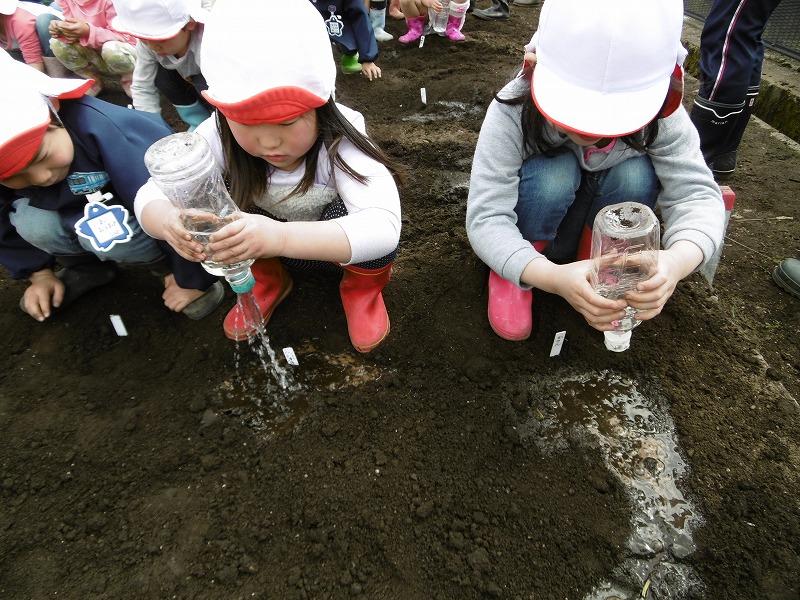 それから持ってきた水をたっぷりあげながら美味しいじゃがいもがたくさんできることをお願いしました。 これからの成長がとても楽しみです。