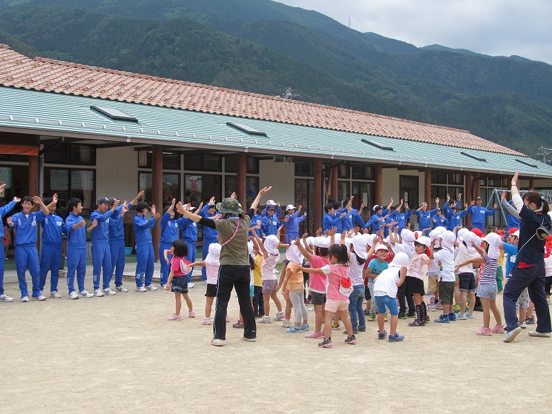 南中3年生のもう一クラスの皆さんが来てくださり、一緒に遊びました。 天気が良かったため、戸外に出て砂場遊びや泥団子作り、たくさんのお兄さんお姉さんと鬼ごっこ・・・ 普段ではなかなかできない大人数でのいろんな遊びを楽しむことができました。 最後にアンパンマン体操をみんなで行ない、元気いっぱいに体を動かしました。 たくさんの笑顔あふれた交流となりました。