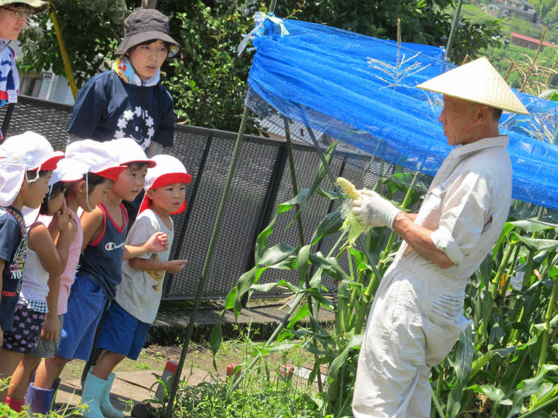 自分で育てたとうもろこしを大事そうに抱える姿はとてもかわいかったですよ。 一人一本お家へもって帰りますが、後のとうもろこしはおやつでいただく予定です。