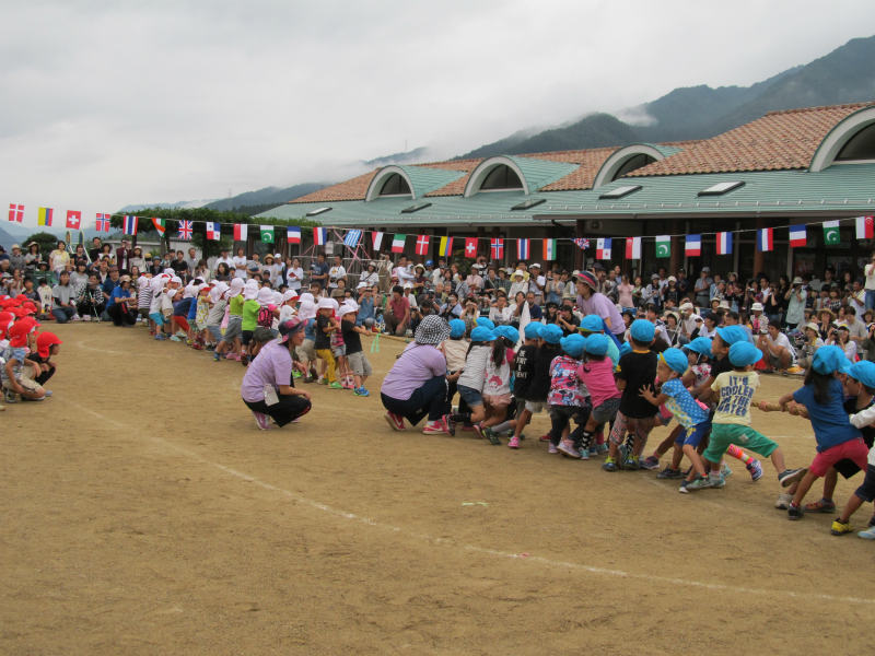 こども園最後の運動会となった年長さん。「逆上がりができるようになりたい」「リレーで一位になりたい」「最後まで一生懸命走る」「ソーラン節をかっこよく踊りたい」「年少さんのお世話や、係の仕事も頑張りたい」など、一人ひとりが目標を持って精一杯日頃の練習に励んできました。 その集大成となった運動会当日、緊張しながらも個々の持てる力を存分に発揮する姿に年長児らしさと大きな成長を感じました。