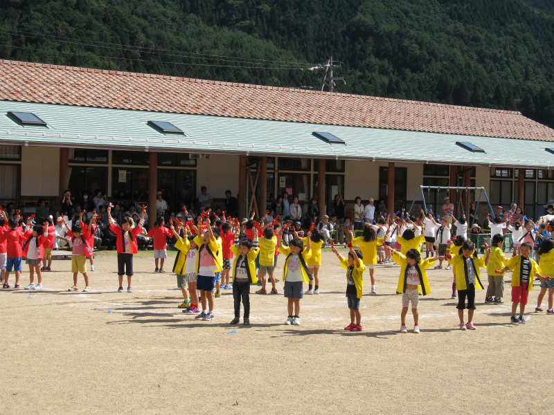 心配された台風の影響もなく、素晴らしい秋空のもとで、おじいちゃん、おばあちゃんと一緒に体を動かしたり運動会での遊戯を観てもらったりと楽しく交流することができました。