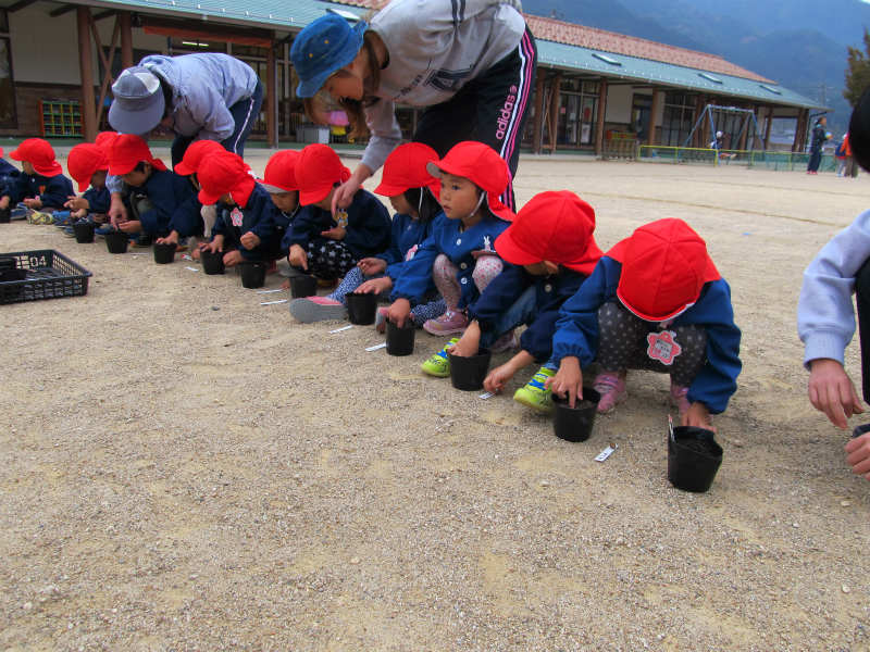 みんなが植えたどんぐりを森のようちえんに植えて、いつか大きな森になるといいですね。
