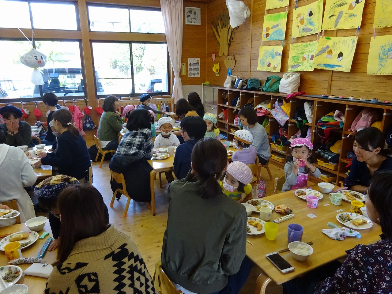 親子給食会では、入園してから半年以上が過ぎ、食べる量が増えたり苦手な食材に挑戦したり、食事中のマナーにも気をつけながら食べている子ども達の様子を見ていただく機会にもなりました。