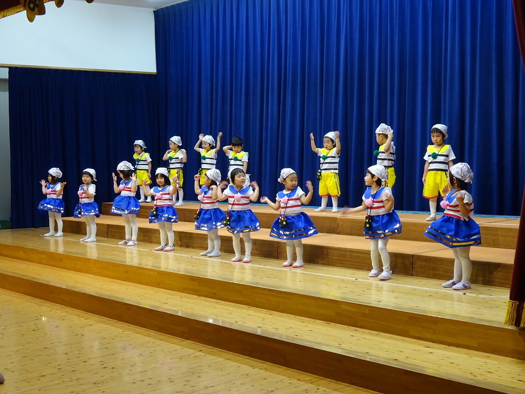 当日は堂々と踊って歌う子や緊張してしまう子など様々でしたが、それぞれ自分なりに一生懸命頑張る姿はとても素敵でした。また、お家の方に嬉しそうに手を振る姿は、本当にかわいかったです。