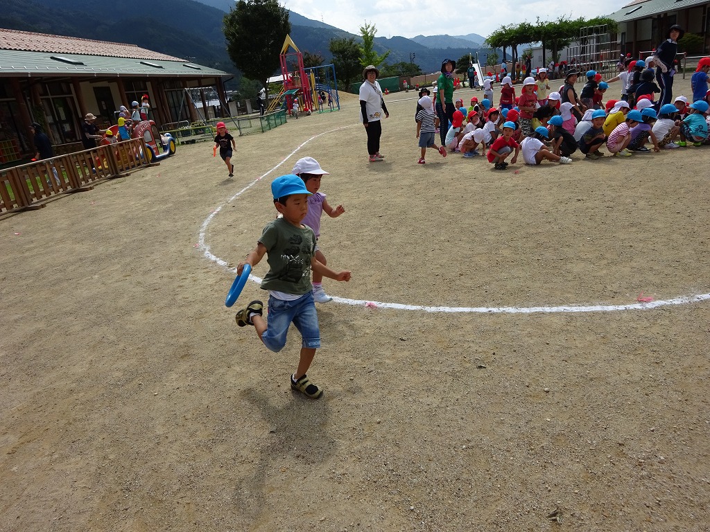 朝の会では一緒に貨物列車をして楽しんだり、名前の呼びあいっこを元気にすることができました。園庭では体操をしたりリレーを一緒にしたいりといっぱい遊ぶことができました。