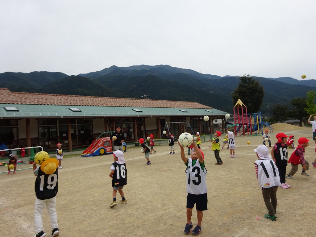 岐阜県サカー協会よりサッカーのコーチが来てくださり、サッカー教室が行われ年長さんが参加しました。
