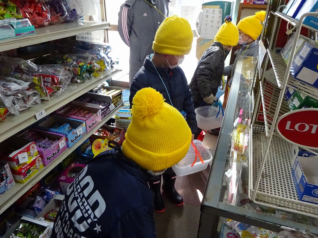 お店の人に「これいくらですか」「これください」「ありがとう」などと積極的にやり取りができて、みんな買い物を楽しむことができたようです。 その日のおやつは、自分で買った駄菓子を満足そうに食べる子ども達でした。