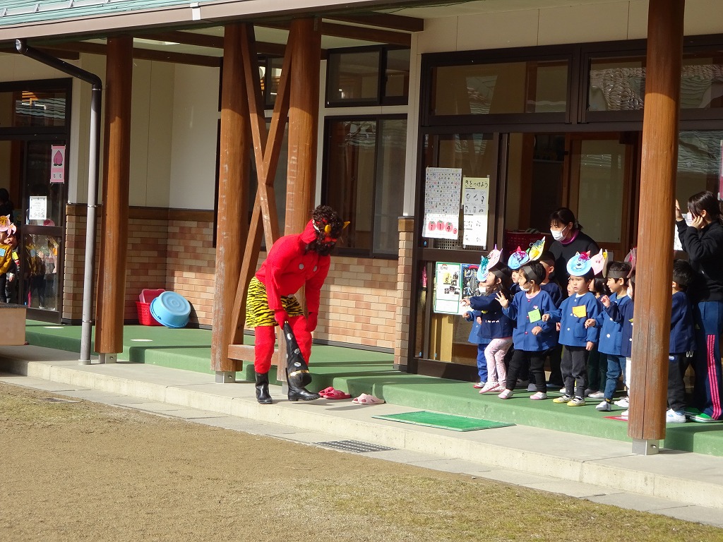 鬼が部屋に入ってくると「きゃ〜!」という声が聞こえ、すぐに「おにはそと!」と懸命に豆をまく声がどの部屋からも聞こえてきました。