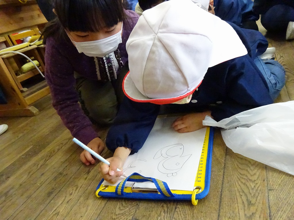 春を感じるような暖かい日に年長さんは萩原小1年生の皆さんから招待を受け、交流会に行ってきました。 交流会では歌、ピアニカ、朗読の発表などを見せてもらい、年長さんはみんなあこがれの眼差しでみていました。 また、お店屋さんごっこも企画・準備をしてくれており、ペアになって一緒に買い物を楽しむことができて、とても嬉しそうでした。
