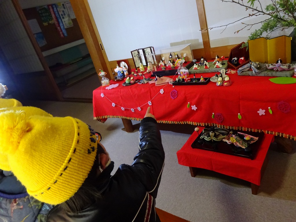 “がんどうちって何するのかな”という話を聞いてからでかけました。みんな大きな声で「ひなさま みしとくれ」と言うことができました。
